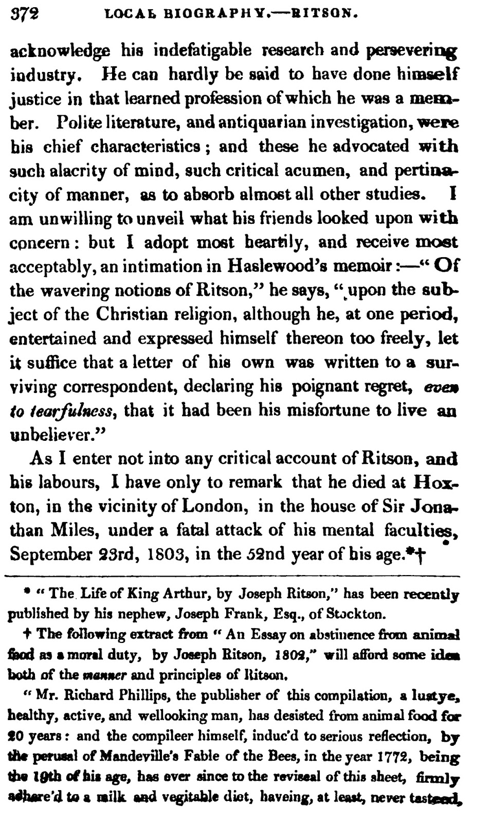 Some account of the life and publications of the late Joseph Ritson, esq, by Joseph Haslewood, 1824