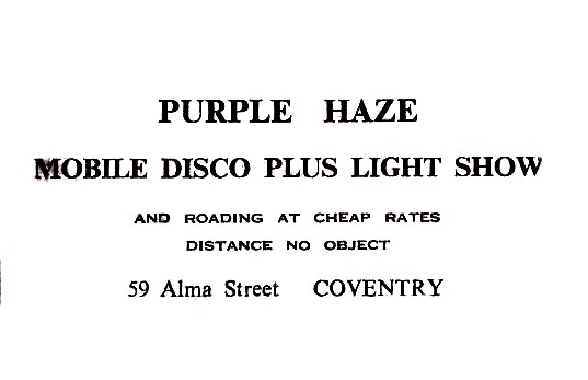 Pete knew that I had started off doing the door for the Umbrella Club and was now putting on the bands on a Friday night and said he needed some one to do the door for the his progressive Music night at the Walsgrave. I started to go down every Tuesday from June 1970, after work, getting the early enough to help him and the bands set up. Sometimes I’d book the bands for the Umbrella, sometimes I’d suggest bands we had had that went down well. Pete would be there setting up the decks, going through the hits, working out the sequence. A few records I remember him playing in mid 1970, were In the Summertime, Mungo Jerry, Yellow River by Christie, Itchycoo Park, Small Faces, Groovin with Mr Bloe, Mr Bloe, The Green Manalishi, Fleetwood Mac, American Woman, Guess Who, Spirit in the Sky, Norman Greenbaum, Psychedelic Shack, Temptations and most of the hits of the time. He have a two or three bands on each week. The venue was one of several run by Friars Promotion in Coventry who had a contract to provide entertainment in Coventry M & B pubs. Friars was started by Vince Holiday who headed Coventry’s first Rock n Roll band, Vince Martin and the Vampires in the late 1950’s. pete worked for Friars at several pubs and also at the Locarno, doing a Soul disco at the weekend.