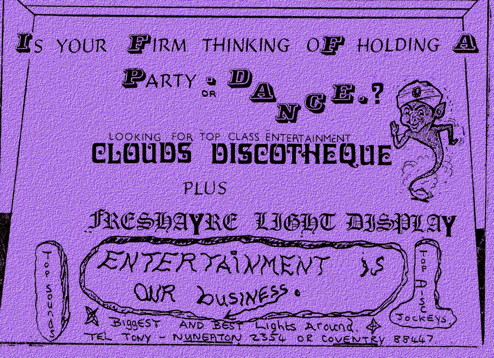 Discos took place at the weekends in The Jaguar, Tally Ho and the The Dive Bar (Lady Godiva) 1972 onwards.
