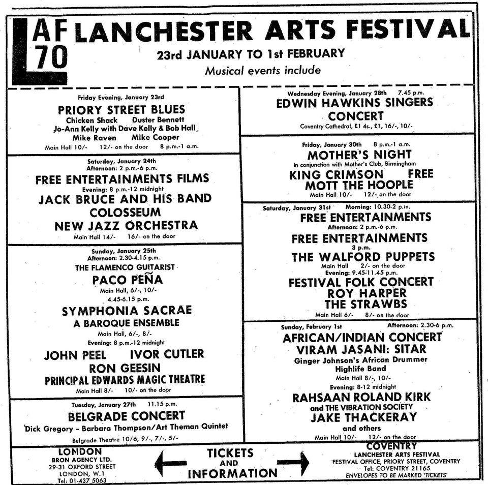Scans of the 1971 Lanch Fest Brochure via The Coventry Music Museum where the full Brochure can be seen.