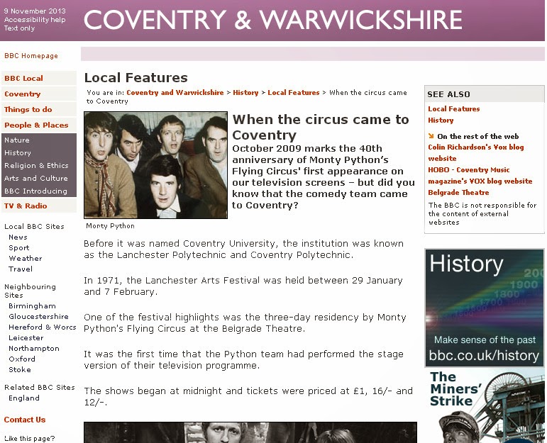 Meanwhile if you have any suggestions for the exhibition – in terms of who should be represented (famous or not famous but important to the Cov Scene) or for artifacts, or whatever – use the comments below. I won’t guarantee your ideas will be taken up but they will be looked at.