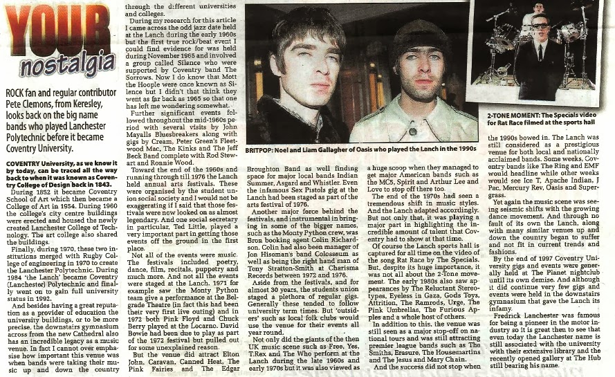 a number of articles on the Lanch for the Coventry Telegraph, using some of the information from the original HoboVox site alongside his own research. This first one gives some of the history of the Lanch and its development as a major Coventry music venue.