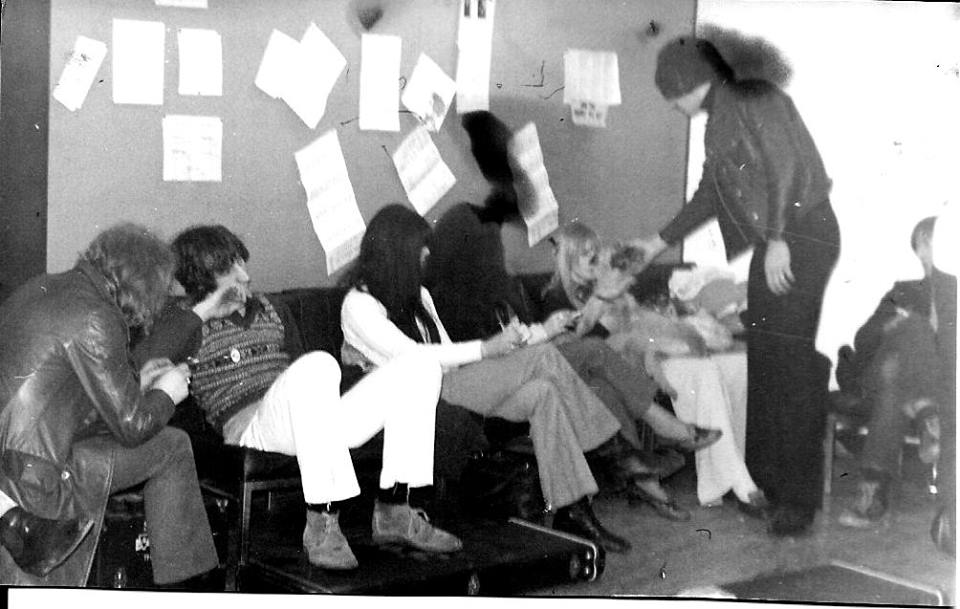 the early part of 74, I (Trev Teasdel) typed up Hobo No3 in the Sunshine Office, thanks to Craig Ward. It was a good place to be based at that time, being fairly central and having the support of Craig Ward who managed Sunshine. Lots of local musicians came through it’s doors so it was a useful place to find out what the bands were up to musically and get wind of developments on the music scene. Although hobo was typed up at Sunshine, the magazine was independent of Sunshine and so was free to report on other agencies and bands not managed by them.