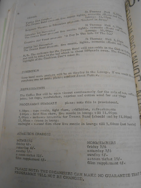 “During the weekend 31st October – 2nd November 1969, the Umbrella Club is to promote a Fringe Arts Festival. Events planned include Films, Music, Drama, Poetry, Light Shows and an exhibition of posters.“