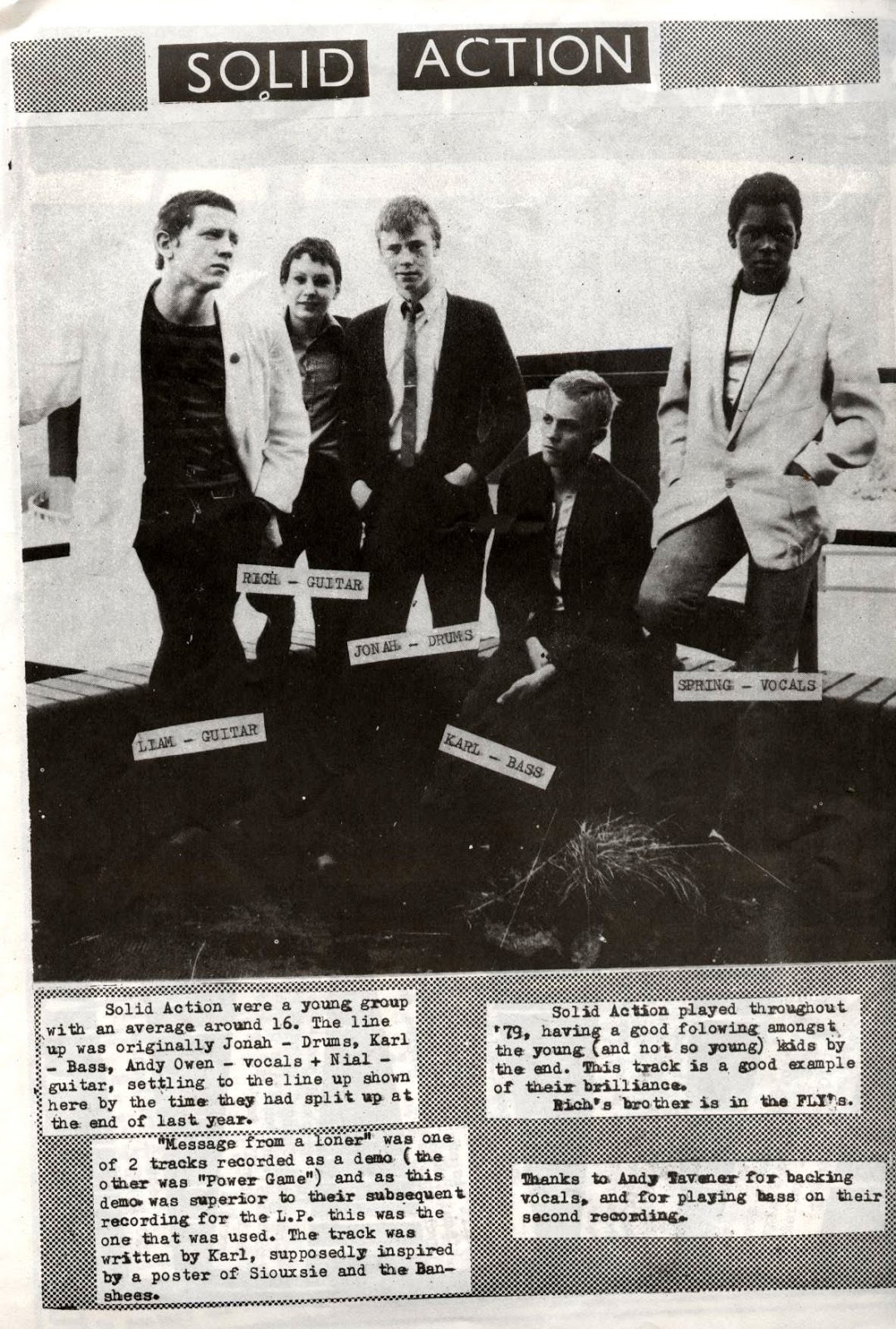 Solid Action played throughout 1979, having a good following amoungst young people (and the not so young) kids by the end. This track is a good example of their brilliance. Rich’s brother is in the Flys. They split up end of 1979.”