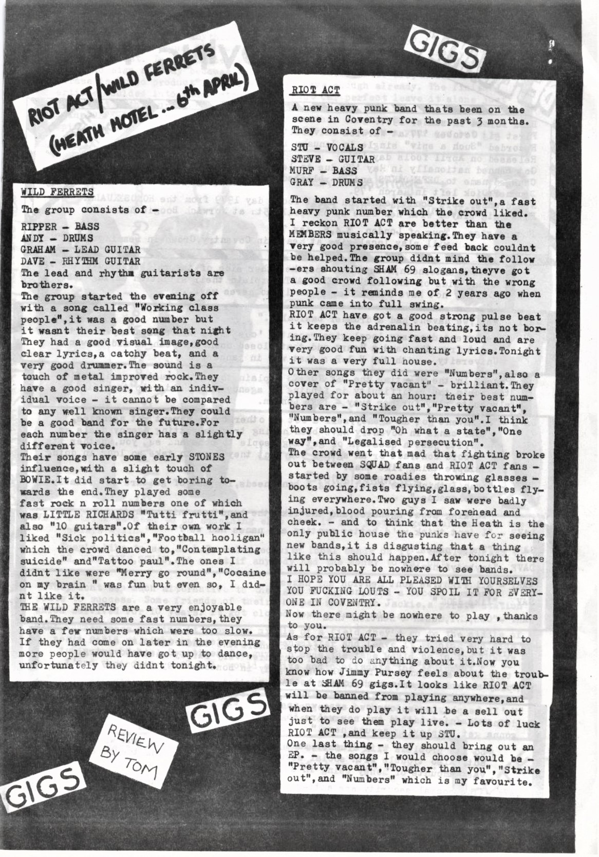 Riot Act (Review by TOM) HEATH HOTEL 6th April Riot Act and the Wild Ferrets.