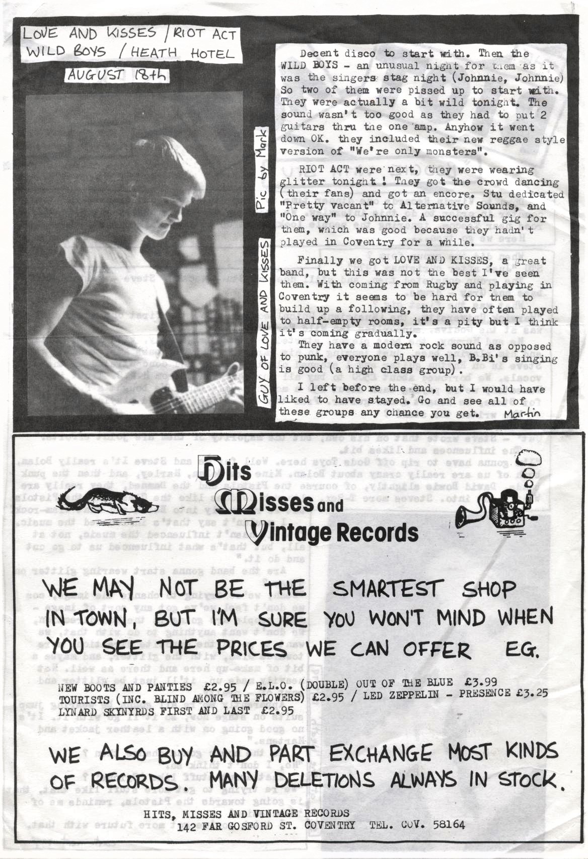Review of Riot Act at the Heath with The Wild Boys and Love and Kisses – August 18th 1980 by Martin Bowes – Alternative Sounds.