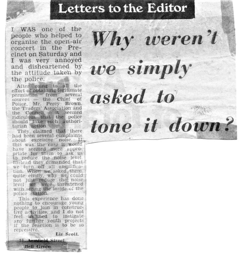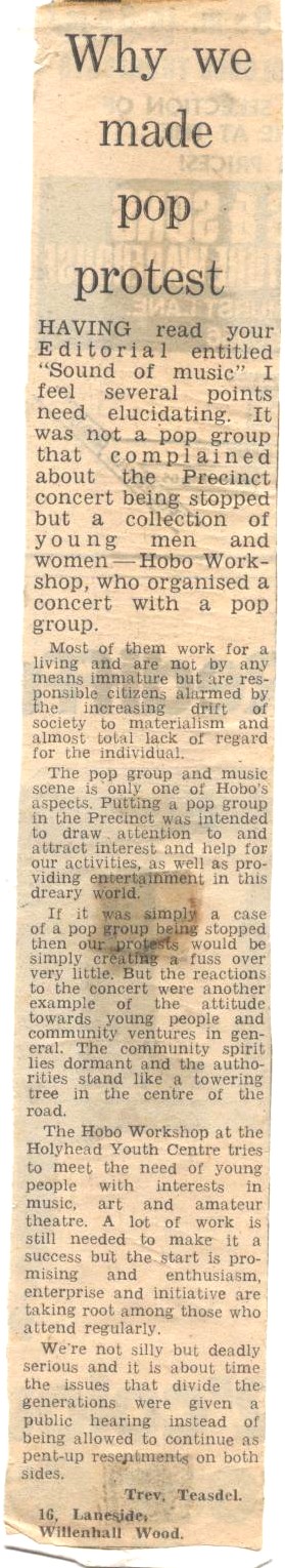 Nothing came of the lyrics I wrote for them although Tony Morgan did put music to one of my lyrics called The Elusive Metallic Idol – about money and the rat race which had been inspired by a TV programme and some of the early Cat Stevens work like Mathew and Sons. He played it to me, changing the word order here and there to fit the song. However it was never used with a band.