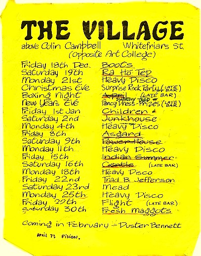 Meanwhile the members of the Mick Green Blues band reformed under different names sometimes with different members added in – in 1971 it was Railroad – I tried vocals for this one and wrote some progressive lyrics. Later versions were Eli, Rein Chantrey, Concert – all with their own posts on here. Along the way they involved Johnny Adams (later with Fission and Squad) and Simon Lovegrove. By 1973 I was playing acoustic and writing my own music to my lyrics and often played solo or backed by some of the band in between their sets at venues like the Navigation, Hand in Heart.