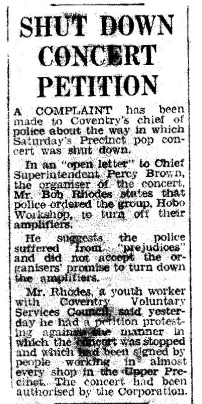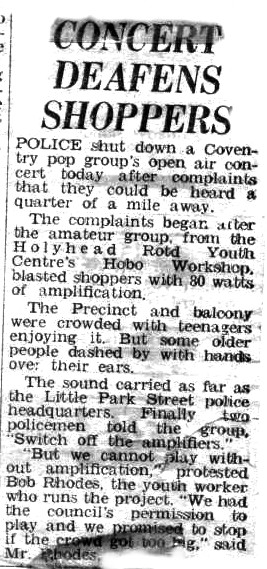 After the gig we went to the Dive bar (Lady Godiva) a cellar bar in Cov where students and musos hung out. John Bradbury had a look through the lyrics and so did Chris Jones ( a Cov blues guitarist who went on to play at Ronnie Scotts and the Speakeasy with Khayyam). They told me the Queens charged a lot for them to rehearse, so I suggested they join the Umbrella and then they could rehearse there for free, which they did. Because of that, John Bradbury and Loz took part in a jam session organised by Neol Davies and this was the first time Neol and John Bradbury played together bearing in mind that together they would record the Selecter in 1977 – the track that was featured on the B side of Gangsters by the Specials.