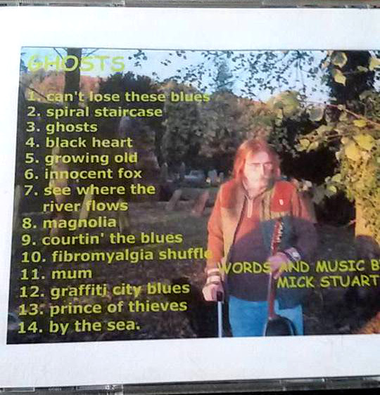 Thanks to Rebecca Ward for alerting me to an album that Mick Stuart made of his own compositions called Ghosts and released in 2001. Rebecca has supplied a photo of the front and back covers.