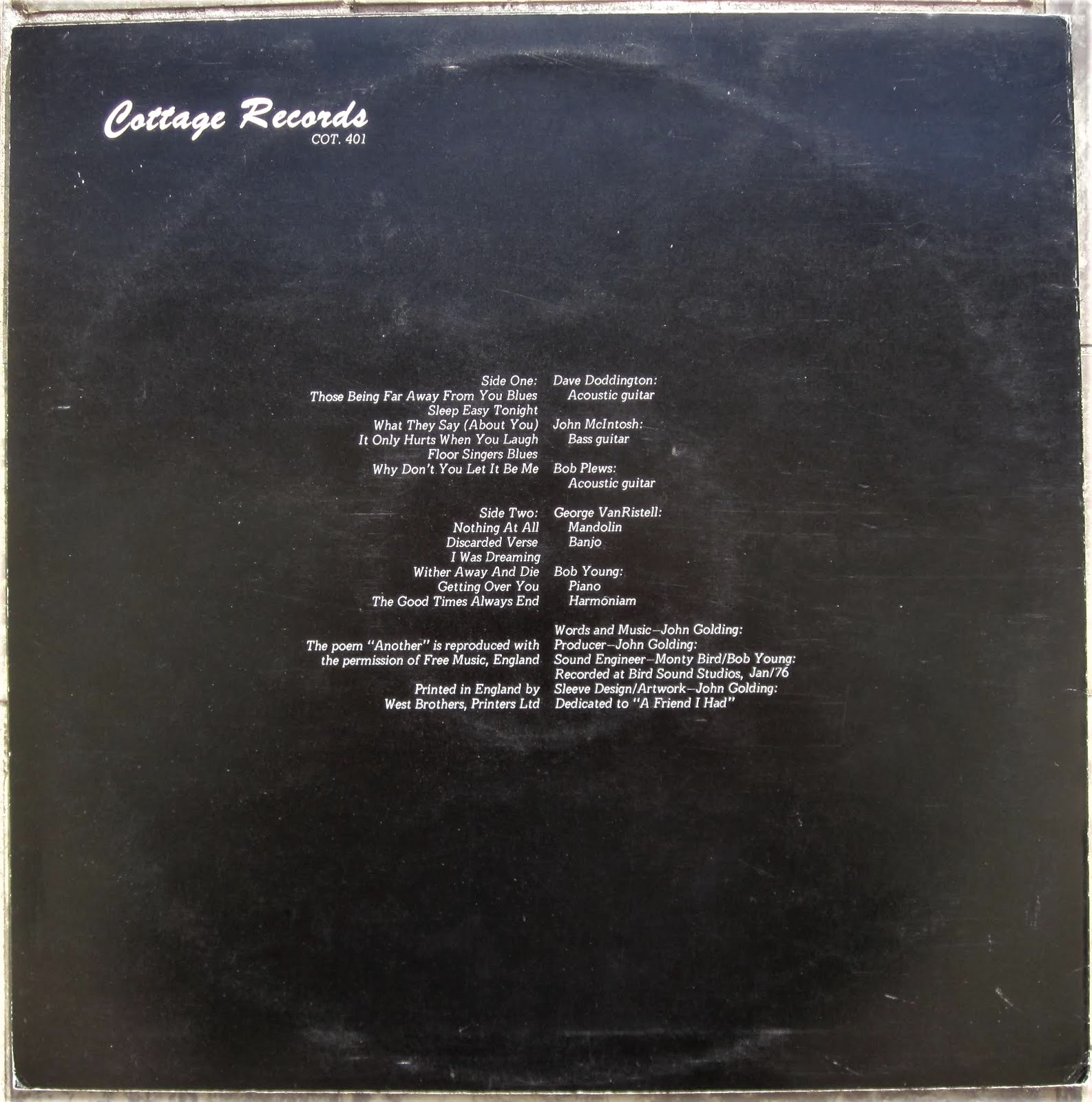 Well i can't let a post about the mercurial songsmith JG pass me by without comment. This brilliant lyricist and performer of heartfelt music reaches my DNA with every spin of so many of his recorded verses. I'm picking up vibes that this unassuming genius never actually realised just how special he was and just how deep the impact of his songs enriched otherwise dull lives. Not sure who actually owns the copyright of Johns back catalogue mostly on his own cottage records label so it may well be him or if he has found a more responsive and appreciative audience upstairs so a family member may pick up the mantle . With this thought in mind how wonderful to contemplate a COLLECTIVE VERSE compilation cd / hi def bitrate download . For its only by blowing the cobwebs of Johns considerable legacy that the unenlightened can also appreciate his wonderful talent and also like me eulogise . Contacted John via a YT post some years ago bestowing the virtues of Photographs being released on cd , a week later he had sent me a copy without charge , I love you mr Golding thanks for nourishing an impoverished life through your songs . respectfully lol bishop aka macman.
