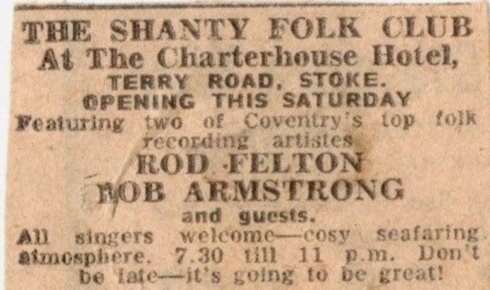 Rod Felton designed and paid for the advert in Hobo for the Rude Bear Folk club, utilising the skills that he used as a commercial artist for his new purposes.