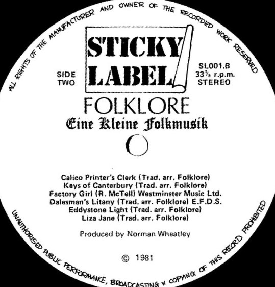 Their 2nd album was called Eine Klein Folk and was produced by local radio presenter (Radio Mercia/ BRMB / singer songwriter / poet Norman Wheatley. Norman was the organiser of folk sessions at the Coventry Arts Umbrella in the early 70’s and a prominent member of the Umbrella poets.