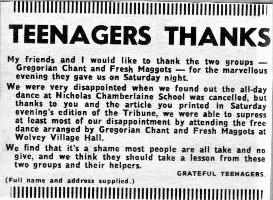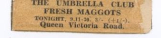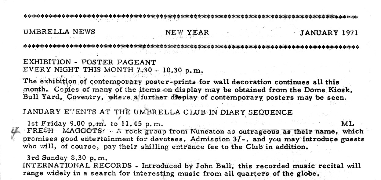 The blurb in Umbrella News read “A rock group from Nuneaton as outrageous as their name, which promises good entertainment for devotees”.