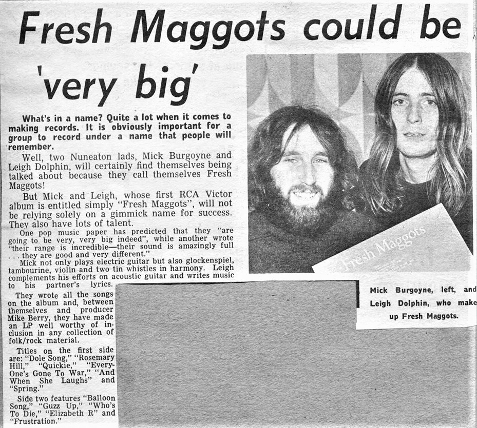 “Fresh Maggots are just two people – 19 year olds Mick Burgoyne and Leigh Dolphin from Nuneaton, Warwickshire, England – and long before this album was conceived they were inspiring music journalists to the sort of fulsome praise usually reserved for established stars.