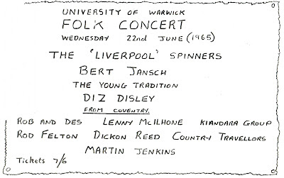 So to conclude, here is an appeal. If there is anybody who would like to risk his resources to open, say, a Friday or Saturday night club in the Centre of Coventry, booking such guests to appear, and if there is any pub landlord who would offer the venue, without charging the organiser for the privilege, there would be a lot of people, I’m sure, who would make a point of supporting that club, thus bringing back the spirit of folk that existed in the late 60’s and early 70’s.