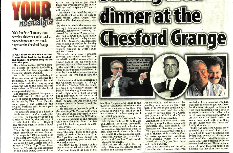 ROCK fan Pete Clemons, from Keresley, this week looks back at dinner dances and live music nights at the Chesford Grange Hotel.