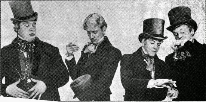 their name. Initially their stage gear was top hats and tails a’ la ‘Pickwick Papers’ , but when they couldn’t find anyone to clean them, they quickly gave the image up!