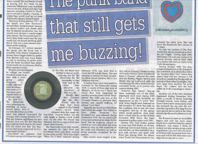 Pete Clemons with his latest article for the Coventry Telegraph. They recently played the Godiva Festival and back in the 70’s they played Mr Georges with Neil O’Connor’s punk band – The Flys who continued to tour with them after that. I saw the Buzzcocks gig at Tiffany’s with Penetration c 1978.