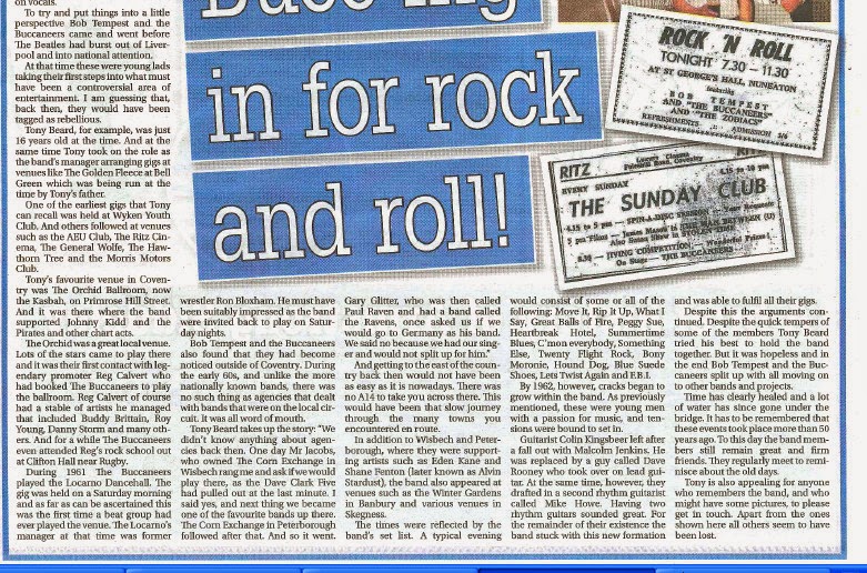 Once again, the latest article by Pete Clemons for Coventry Telegraph taking us back to the early 60’s with Bob Tempest and the Buccaneers …