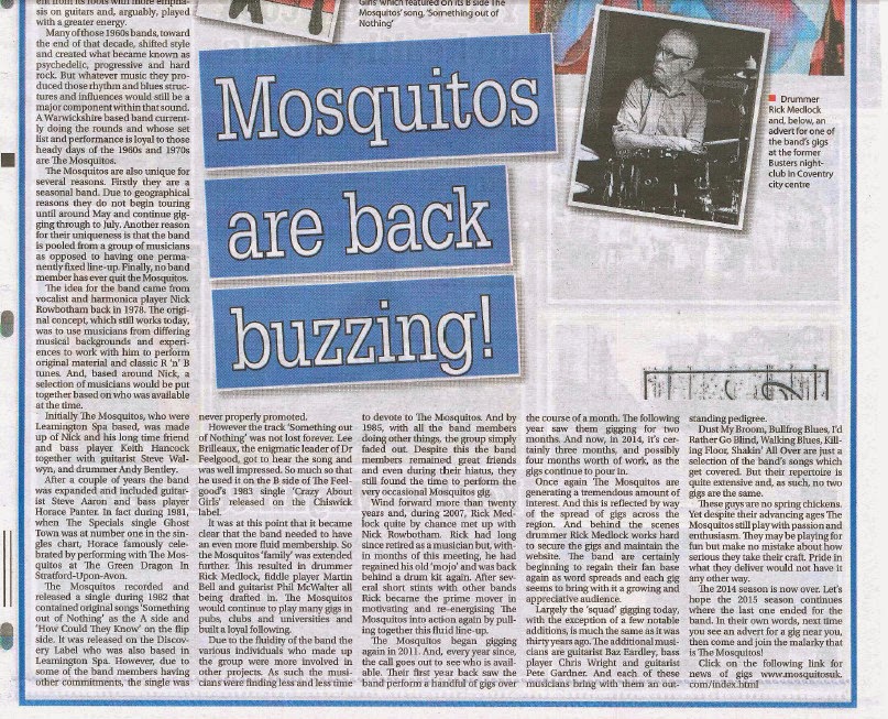 Pete Clemons looks at the return of Coventry RnB band The Mosquitos in the Coventry Telegraph.