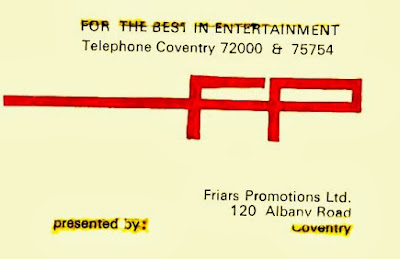 Between then this new venture would become known as Friars Promotions and Agencies. At about the same time they left their respective offices in Whitefriars Street and moved to new premises on the corner of Albany Road and Broomfield Road in Earlsdon.