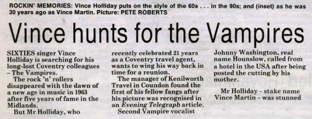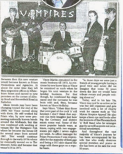 Pete Clemons with memories from Vince Martin of the Vampires, Coventry 1950’s / early 60’s for the Coventry Telegraph.