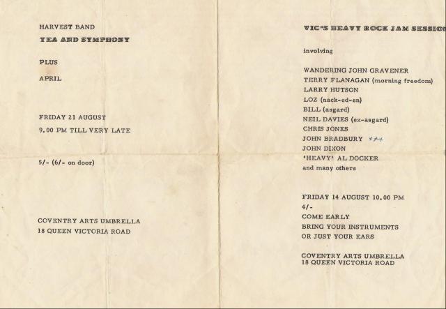 The main topic of conversation at The Dive, was how much the Queens Hotel charged Nack-ed-en to practice. I was putting on the bands at the Umbrella Club with Al Docker at the time and suggested they join the Coventry Arts Umbrella Club, as they would then be able to practice free of charge. They took up the offer and I got to watch Nak-ed-en practice on a regular basis in the Umbrella coffee bar, before and we put them on at the Umbrella Club.