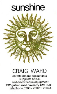 Craig Ward – Craig began as a DJ in Coventry alongside some of the other Top DJ’s in Coventry, Pete Waterman, Mark Brown, Tilly Rutherford etc. In 1974 he formed the Sunshine Music Agency, based in Gulson Road, with other Coventry luminaries – songwriter Bob Young, DJ Graham Wood (Ex Silk Disco), Monty Bird of  Bird Studios, and Stu Bell. They promoted local and regional bands like A Band Called George, who made a single for the Bell LabelNCB Man and others (see the blog post). They supported bands and artists with bookings, venues, studios, songwriting and promotion.