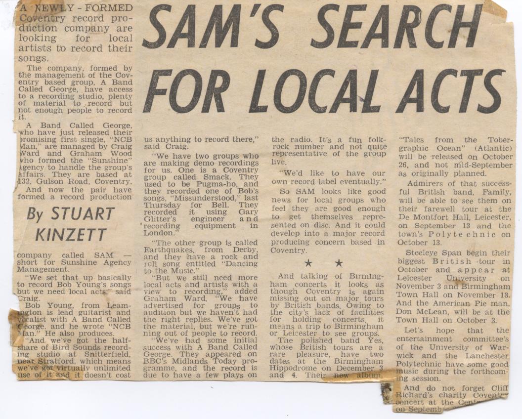 Craig Ward – Craig began as a DJ in Coventry alongside some of the other Top DJ’s in Coventry, Pete Waterman, Mark Brown, Tilly Rutherford etc. In 1974 he formed the Sunshine Music Agency, based in Gulson Road, with other Coventry luminaries – songwriter Bob Young, DJ Graham Wood (Ex Silk Disco), Monty Bird of  Bird Studios, and Stu Bell. They promoted local and regional bands like A Band Called George, who made a single for the Bell LabelNCB Man and others (see the blog post). They supported bands and artists with bookings, venues, studios, songwriting and promotion.