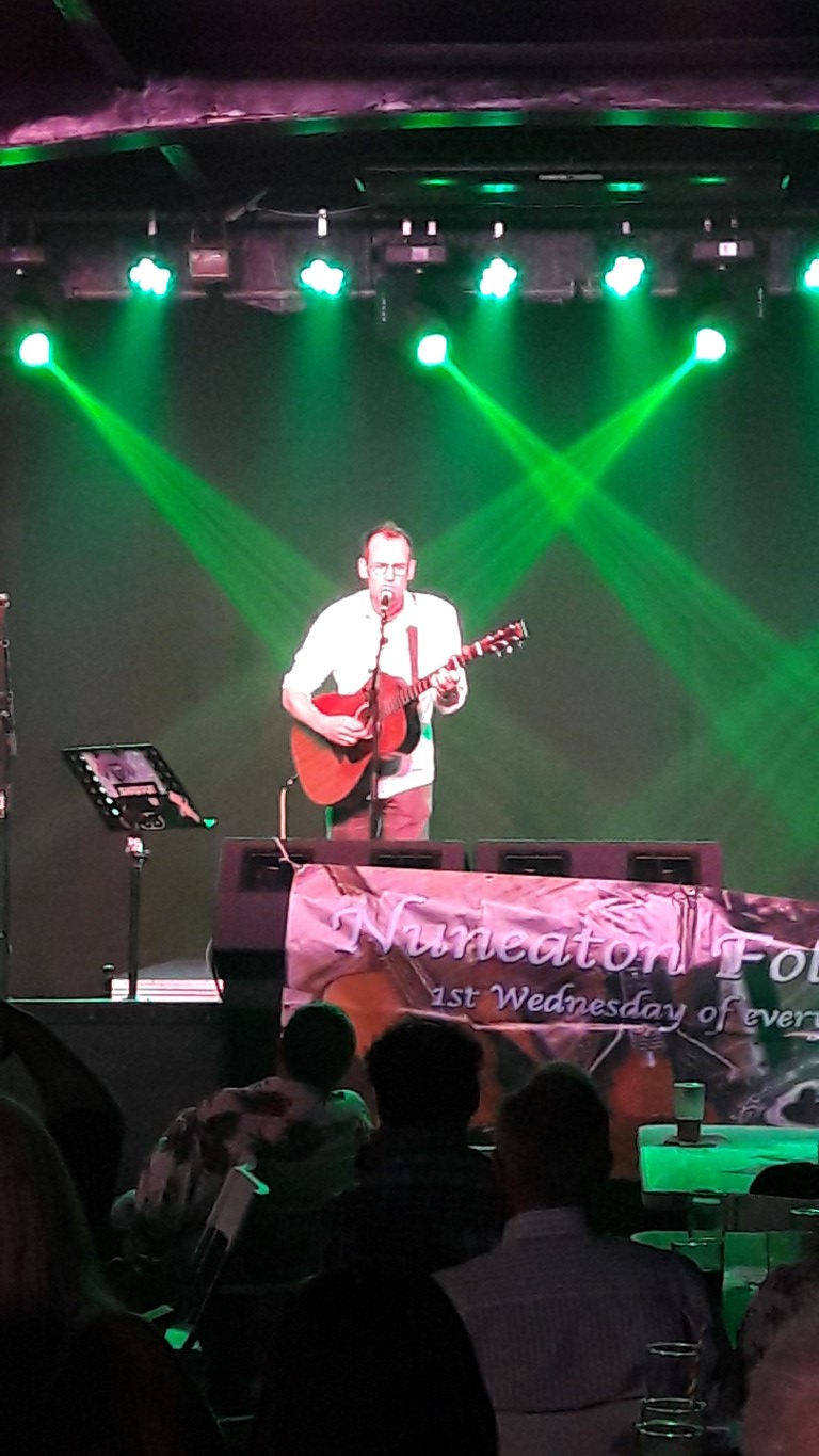 Firstly, I guess, it is only right to congratulate host Geoff Veasey for the incredible venue he has managed to secure for the Nuneaton Folk Club. With a full stage, lights and a wonderful sound system he has certainly done himself, and the club, proud.