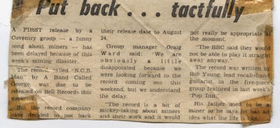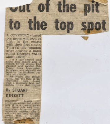 “Released their first single on the 24th August entitled NCB MAN, which is out on the Bell label. their music, which is self composed, is in similar vain to that of Lindisfarne. The members of the band hail from both Coventry and Leamington. They are Bob Young on lead vocals and guitar. Colin Young on bass; Roger Prince on guitar;Nicky Trevisick on drums and Baz Andruszko on accordion. Not forgetting Ricky and Dave the trusty roadies!). (both Ex Indian Summer roadies). …