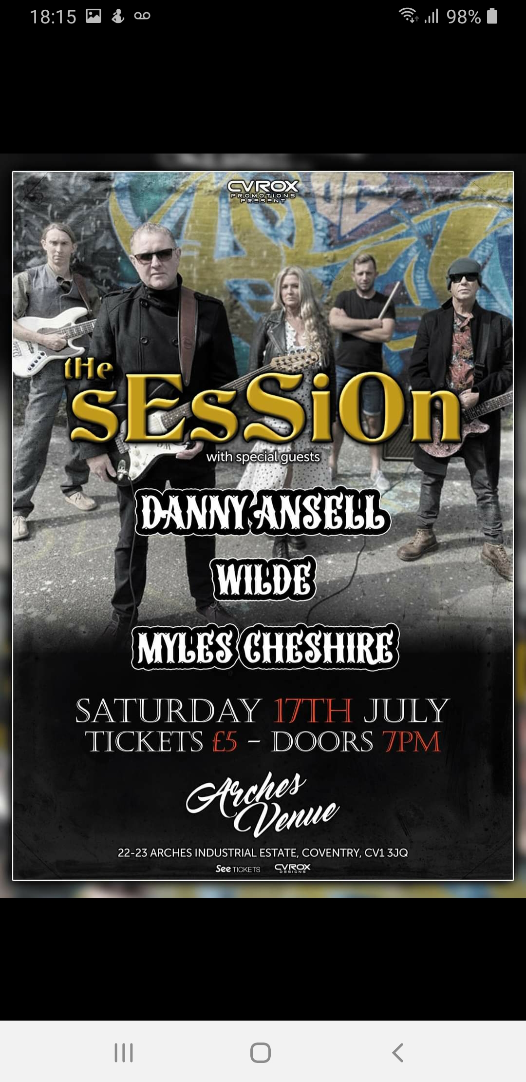 But there is so much more to this band. Down the years The Session, who were formed in a house in Earlsdon – directly opposite the High Street, have graced the main stage at Godiva Festival. During 2016 they supported The Charlatans. Additionally they have also shared the stage with Simon Fowler from Ocean Colour Scene and Star sailor front man James Walsh. They also won the local award for the most hard-working gigging band in Coventry and Warwickshire in 2017. And throughout the existence of The Session there has been a steady stream of musicians passing through the band.
