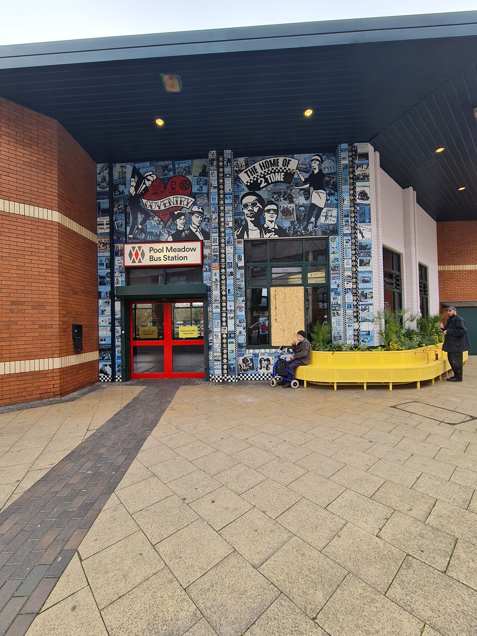 The Ska’d For Life mural or mosaic (named after Horace Panter‘s autobiography) was commissioned by Coventry City of Culture as a ‘Welcome to Coventry – Celebration of the City’s Involvement in Two Tone and the decades long thriving Coventry music scene.