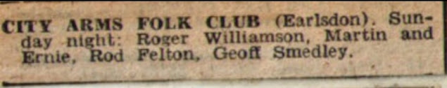 City Arms Folk Club, which attracted some of the country’s most talented