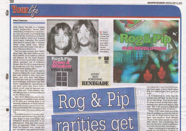 Pete Clemons takes a look at an old but new Roger Lomas album with material recorded with another Ex member of The Sorrows, Pip Whitcher. Rog and Pip‘s new album on Rise Above Records, run by Lee Dorian is the subject of Pete’s latest article for the Coventry Telegraph.