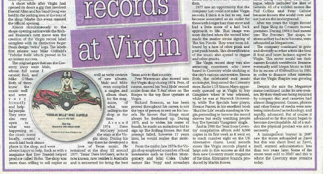 Texas Dave McGarry worked at Virgin records Coventry c 1974 onwards before moving to Australia to promote texas Music artists touring down under. His story is here –