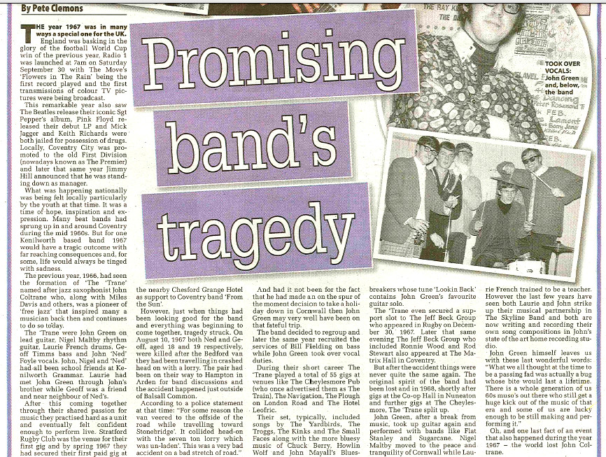 Pete Clemons looks at the tragic history of a promising 60’s Coventry band named after John Coltrane for his latest article in the Coventry Telegraph – The Trane…