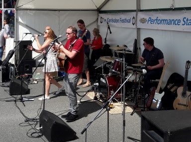 Below – Tim James with his band Ra Ho Tep playing the ruins of Coventry Cathedral