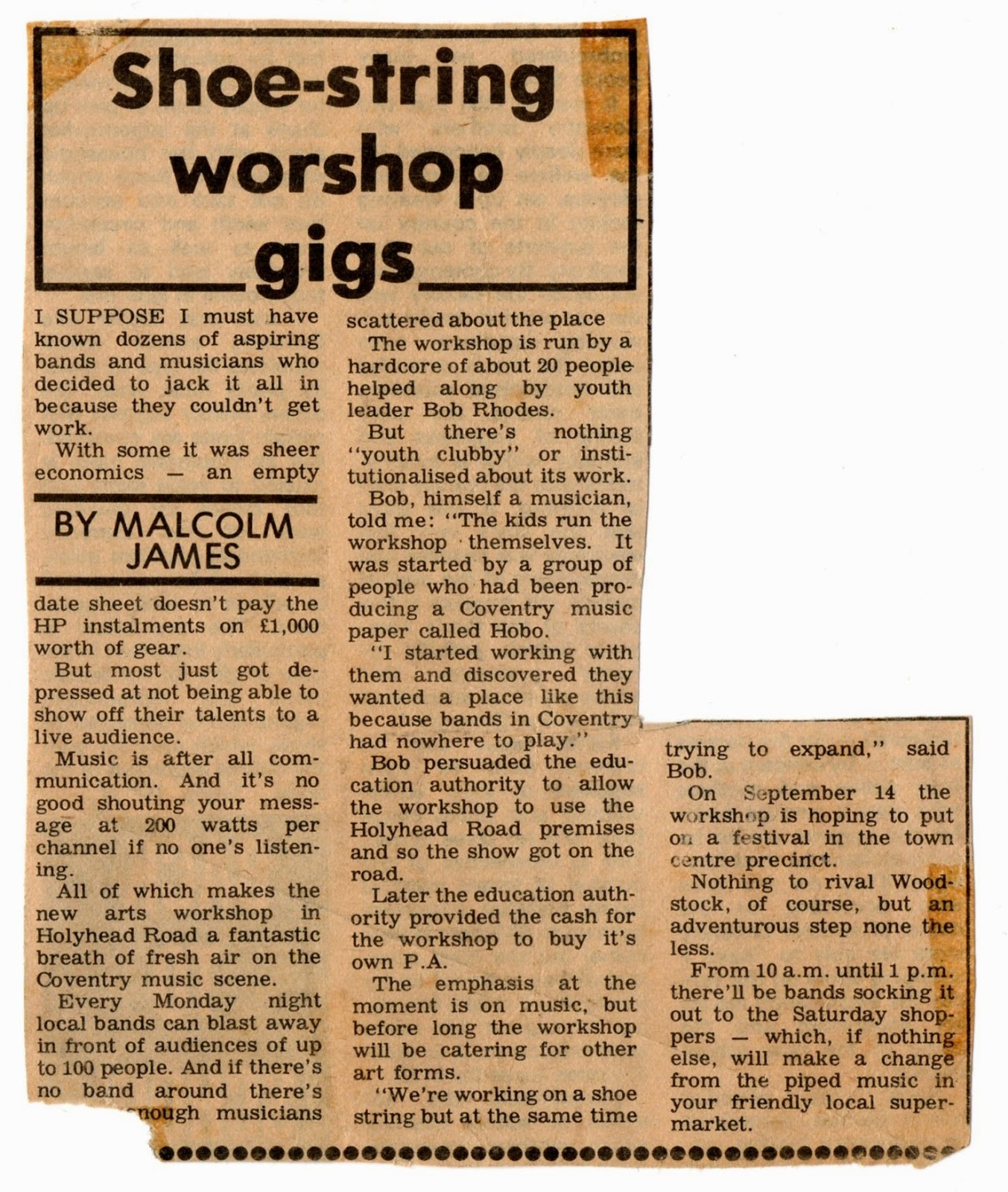 Another early press cutting fromthe Coventry Journal in 1974 regarding the Hobo Workshop.