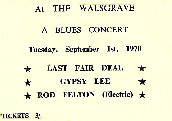 Trev would help Pete collect payment on the door along with fulfilling a number of other functions at The Walsgrave. Trev also has strong memories of seeing Pete play staccato flute and of seeing him jam with legendary local singer songwriter Rod Felton at the Earlsdon Cottage. Rod, who worked the national folk circuit, also had a strong R & B voice and had, according to Pete, become a bit of star on the folk scene.