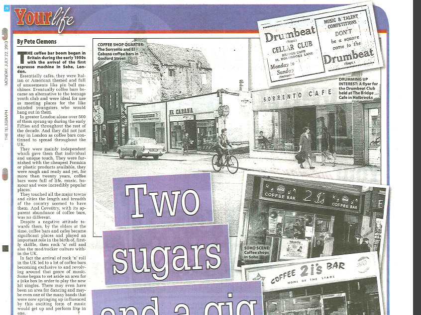 Apart from gigs gained in Coventry The Sabres were now securing work in places like Morecombe, Skegness, Mablethorpe, Stoke-on-Trent, the 2I’s coffee bar in London and on the Isle of Sheppey in Kent.