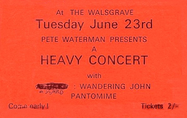 Pete got me to write for several local bands like Coconut Mat and some times threw ideas at me for lyrics –Umbrella club. They were mostly local or regional bands at that venue like Wandering John, Asgard (a Pink Floyd type outfit that John Peel was interested in), Pantomime (from Birmingham), April, Skid Row (not local) and many more.