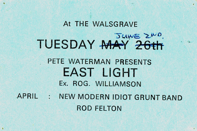 one using the imagery of Chess is one I remember. He also asked me to come down the Walsgrave – a pub, where on a Tuesday night , he ran a progressive music venue and disco. For nearly a year i turned up early after work and helped Pete set up and did the door. It meant I got in free and was an opportunity to meet new bands, some of which I booked for the