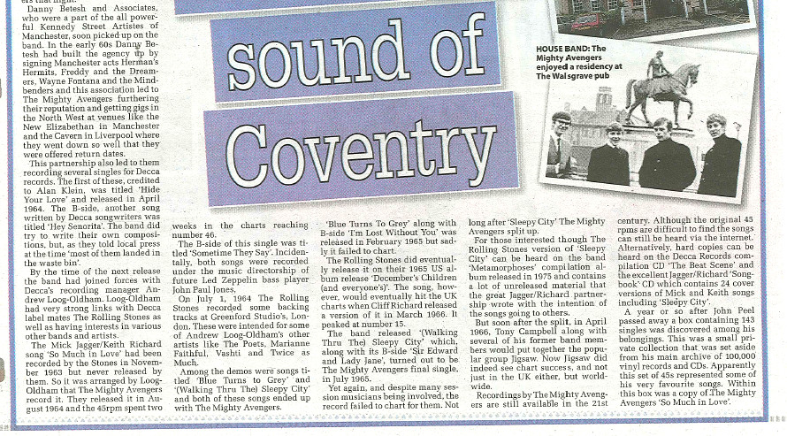 Pete points out that although recently published in the Cov Telegraph, this article was written sometime ago and the the album he mentions “A Spoonful of Time”, mentioned towards the end of the article, was actually called “Time machine” – so bear that in mind.