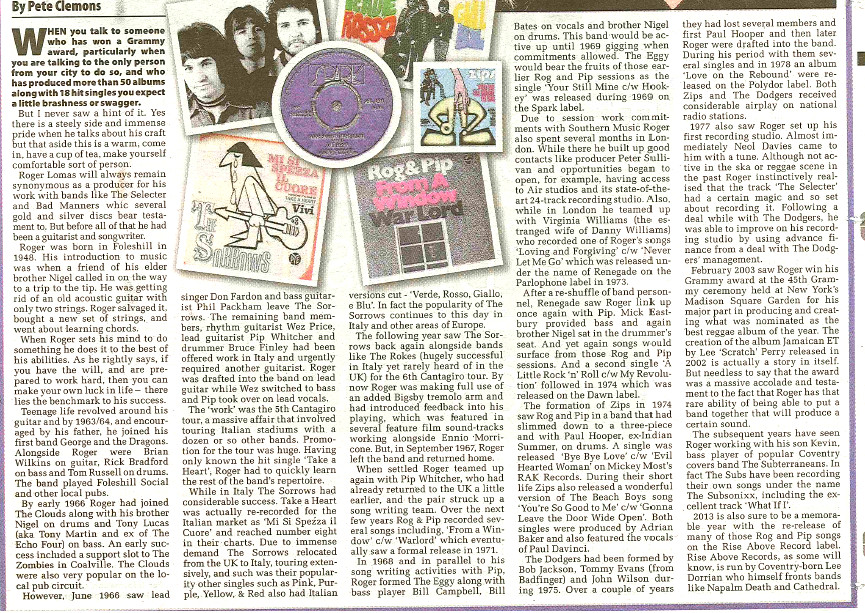 The subsequent years have seen Roger working with his son Kevin, bass player of popular Coventry covers band The Subterraneans. In fact The Subs have been recording their own songs under the name The Subsonixx, including the excellent track ‘What If I’.