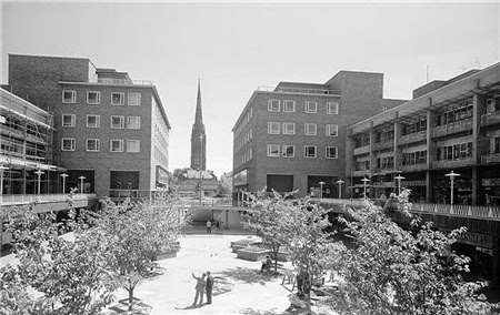 The Upper precinct in the 60’s and 70’s where the concert was held. The inner area and the balconies were packed with shoppers and their children watching the concert. The stage was by the fountains facing up towards the spire.