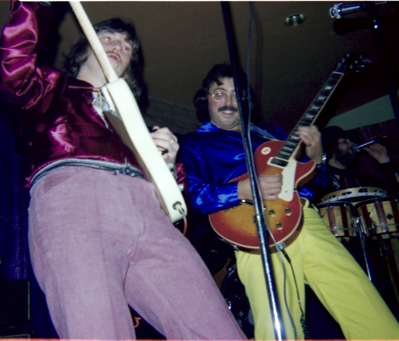 Bob Sharp plays bass with us for about two years before getting married and going to America. His successor is John Rushton who stays for four years or so before moving away from the area. In 1974 we recruit Ian Boycott to take on lead vocals and he also invests in a percussion setup comprising congas, bongos and timbales. Ian stays for a about eight years and also becomes a close friend. Unfortunately Tony Lloyd leaves after nearly two years to join another local band “Vehicle” that has a more attractive line-up for him that includes brass and keyboards, and we then have an unsettled few months with different guitarists and drummers, none of whom are right for us.