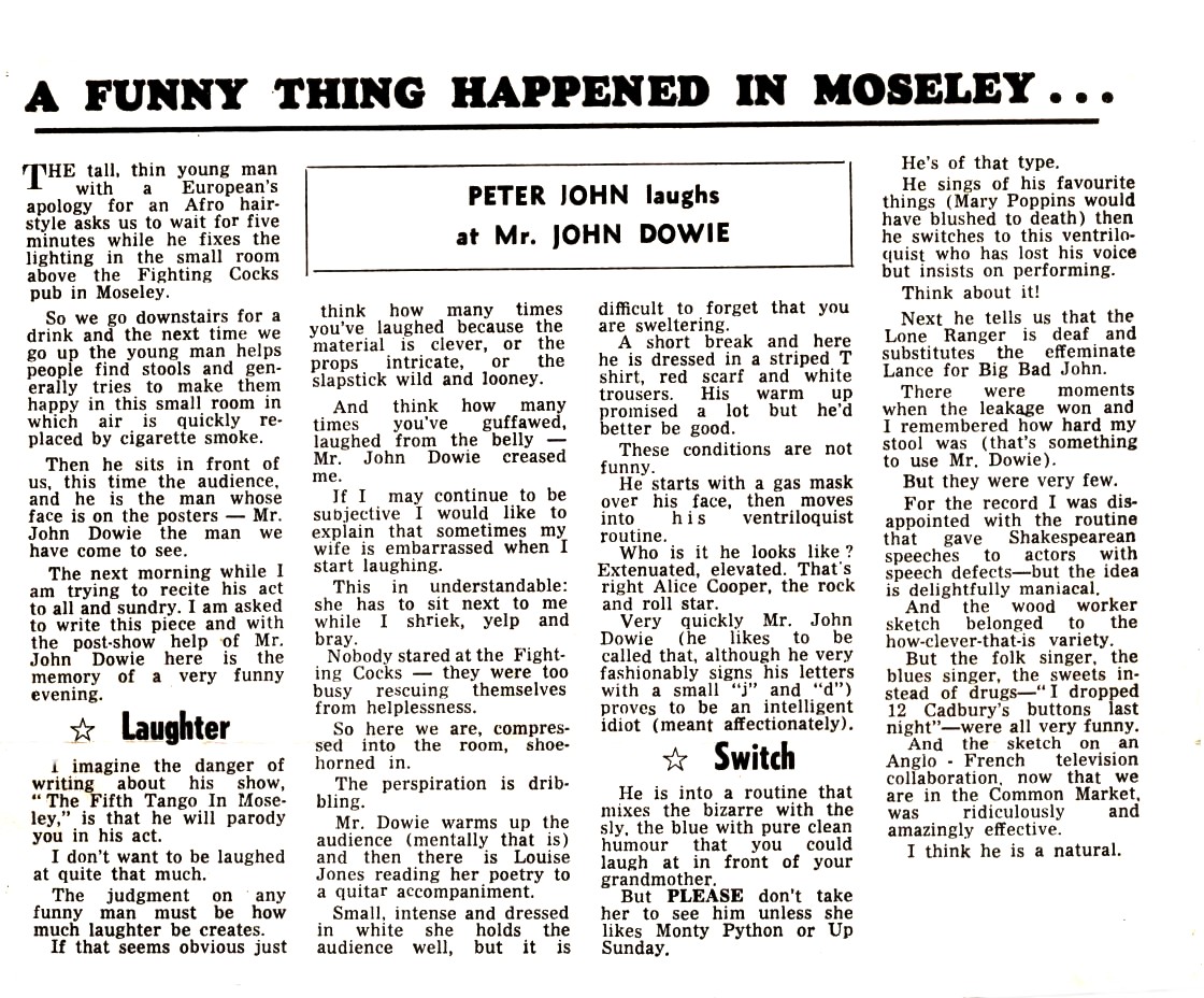 Another regular artist at the Streetpress gigs was humourist John Dowie who later made a record with Joy Division.